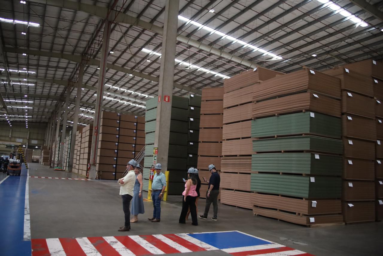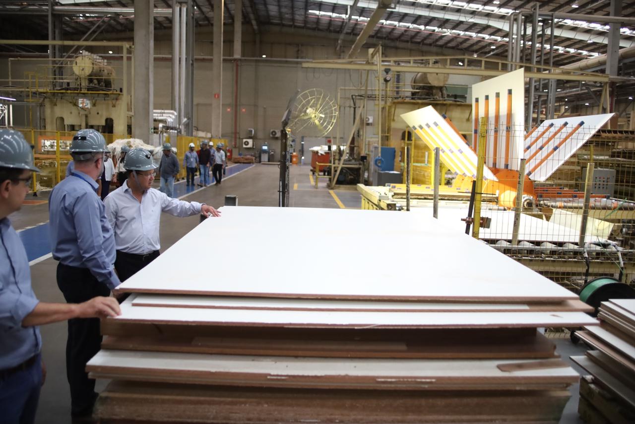 Com foco na parceria com a iniciativa privada, o governador visitou a indústria Greenplac, em Água Clara. Empresa do setor moveleiro que produz placas de MDF revestido. Ela já investiu mais de R$ 1 bilhão na planta industrial e projetos florestais em MS.