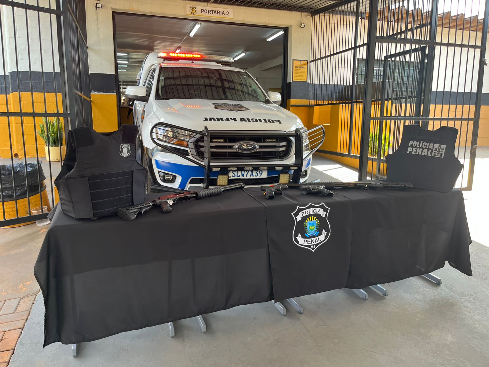 Na oportunidade, também foram entregues equipamentos para reforçar a segurança e o desenvolvimento das atividades dos policiais penais lotados no CPAIG, como novos armamentos tipo espingardas calibre 12 com munições de elastômero, coletes balísticos de proteção individual e uma viatura.