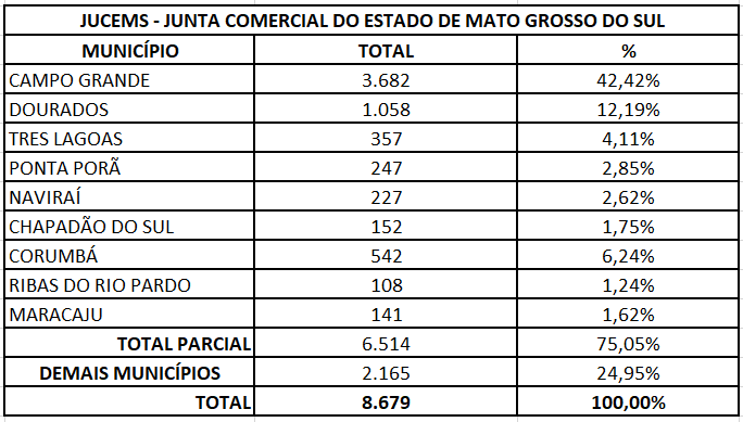 Mato Grosso do Sul caminha para romper mais um número significativo nesse ano. Até o mês de outubro a Jucems (Junta Comercial do Estado) já somava a abertura de 8.679 empresas e deve chegar ao fim do ano quebrando a casa dos 10 mil.