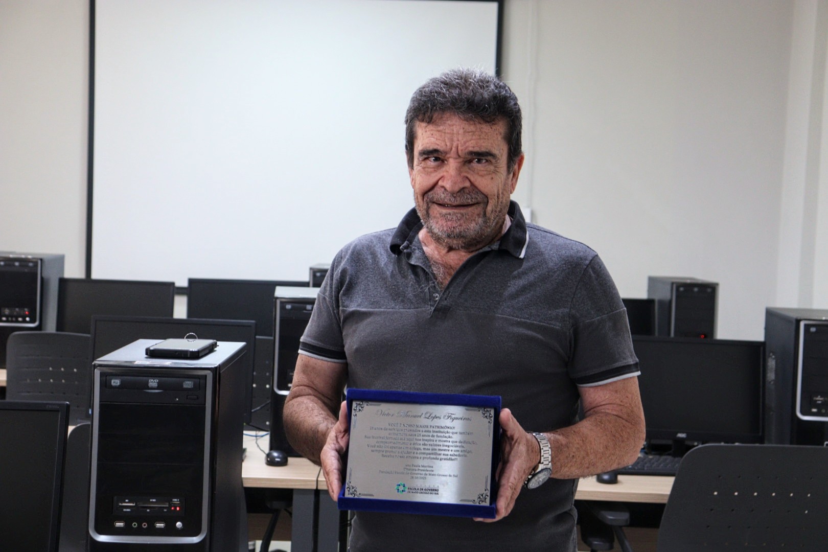 Dos seus 35 anos de carreira, 25 foram dedicados à Escolagov. E Victor não se limitou à área de TI, cuidou do patrimônio, da frota, das compras, do almoxarifado, foi professor de informática e cerimonial, além de mestre de cerimônias em quase todos os eventos do órgão.