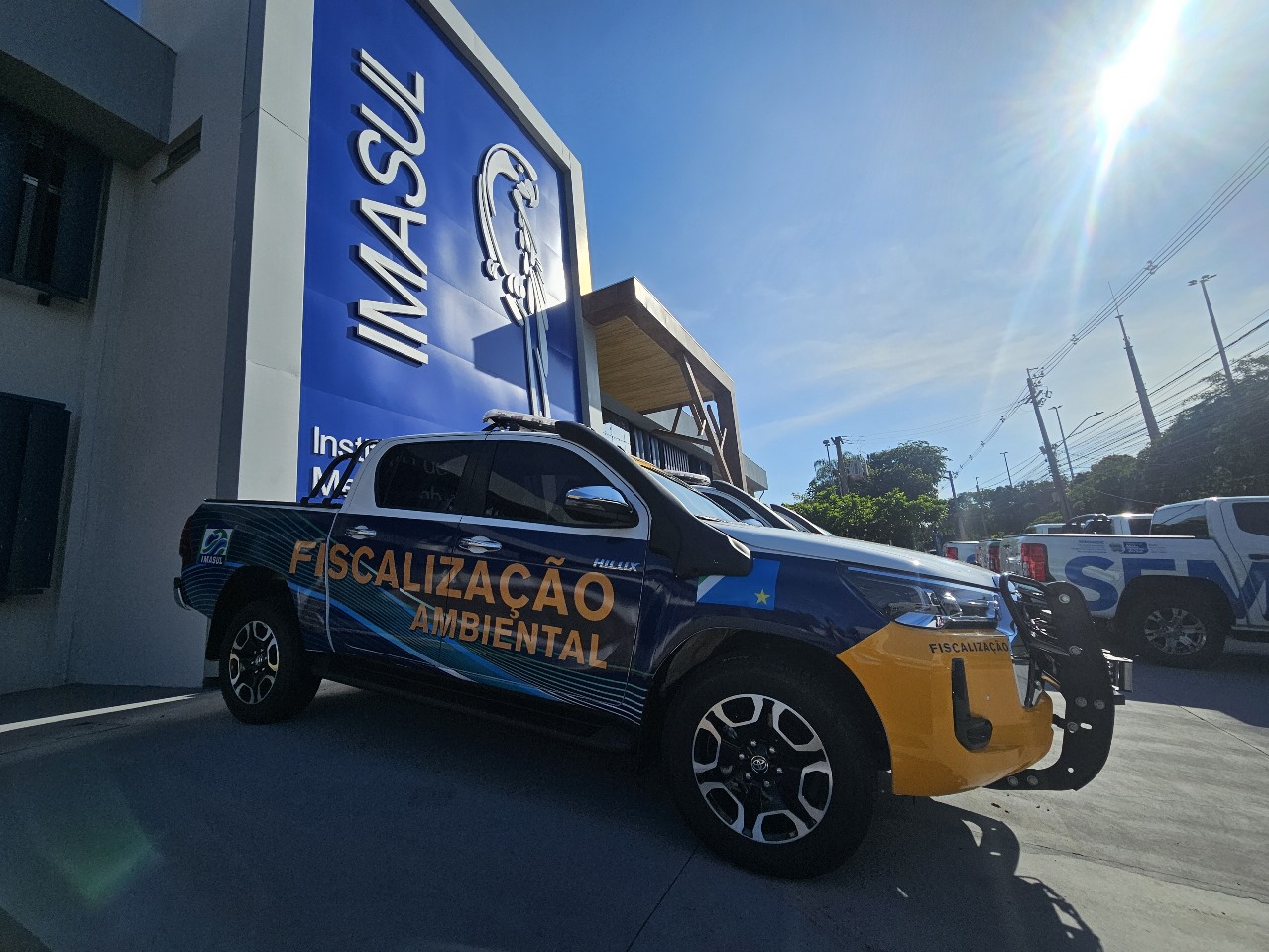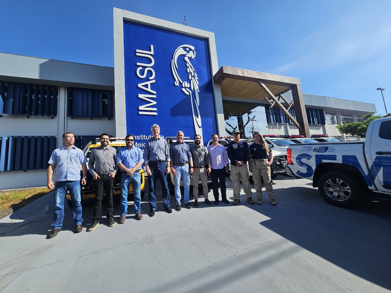 O Imasul (Instituto de Meio Ambiente de Mato Grosso do Sul) recebeu reforço de onze caminhonetes e dois tratores com roçadeira na manhã dessa segunda-feira (15). O secretário da Semadesc (Secretaria de Meio Ambiente, Desenvolvimento, Ciência, Tecnologia e Inovação), Jaime Verruck, e o diretor presidente do Imasul, André Borges, participaram do ato de entrega e falaram sobre a importância do repasse para melhorar os serviços prestados pelo órgão.