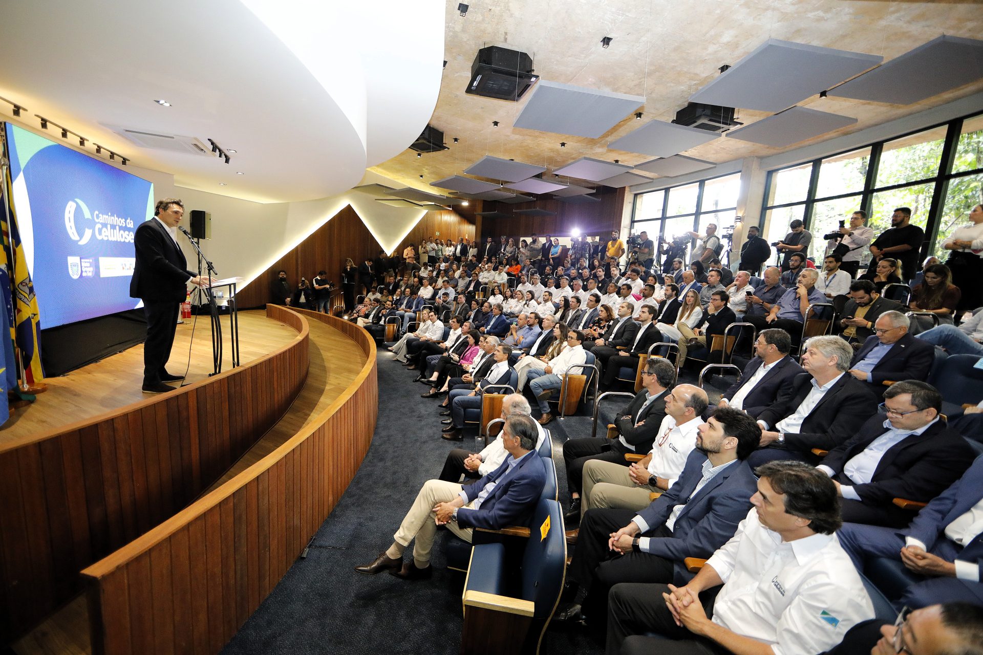 O governador Eduardo Riedel participou nesta segunda-feira (2) da apresentação técnica da Rota da Celulose. Esta nova modelagem rodoviária dispõe de tecnologia, modernidade e flexibilidade, sendo possível novos investimentos caso haja aumento no fluxo do tráfego. O objetivo da parceria público-privada é impulsionar o desenvolvimento do Estado e dar segurança ao usuário.