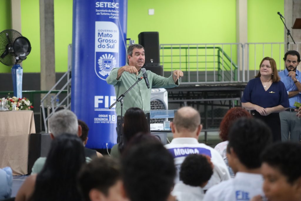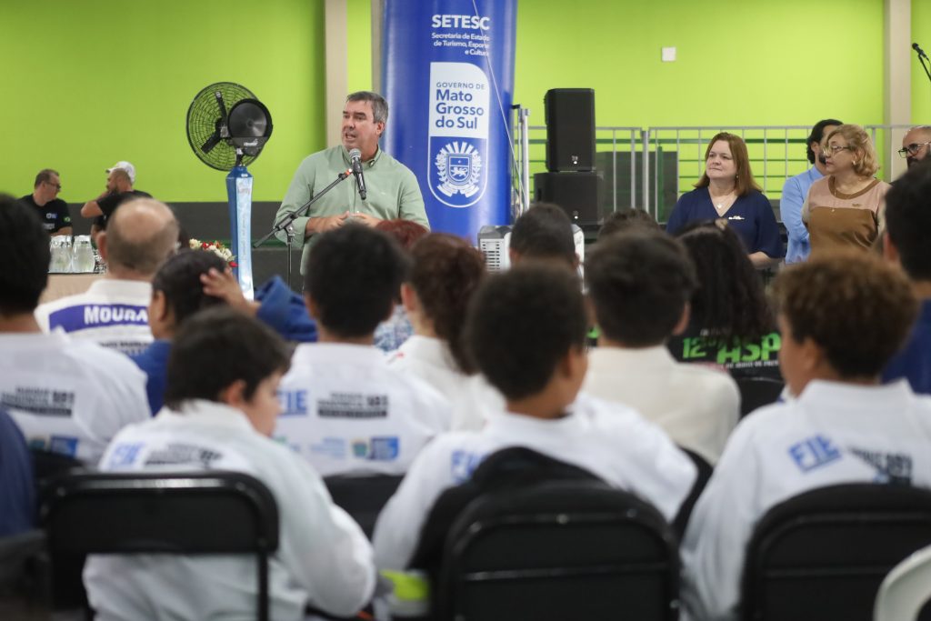 Durante a cerimônia, o governador Eduardo Riedel iniciou sua fala destacando a importância de compartilhar o momento com a comunidade escolar e reconheceu o trabalho das lideranças presentes. “É muito importante, para mim, estar aqui hoje com vocês. Quero agradecer a presença do nosso vice-governador Barbosinha, da deputada estadual Mara Caseiro e de todos que contribuem com o desenvolvimento do nosso Estado”, afirmou.
