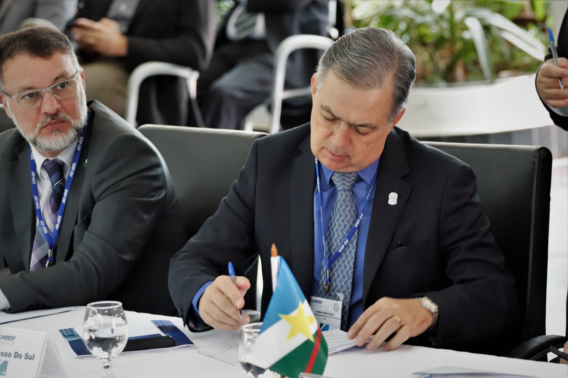Secretários de Segurança Pública de todo país se reuniram em Brasília, nesta terça e quarta-feira (22 e 23), para a 84ª Reunião Ordinária do Conselho Nacional de Secretários de Segurança Pública (Consesp). O secretário de Mato Grosso do Sul, Antonio Carlos Videira, também participou do evento, que aconteceu na Residência Oficial de Águas Claras (Roac) e no Ministério da Justiça e Segurança Pública (MJSP). Na ocasião, os integrantes do Consesp também se reuniram com a equipe de transição do Governo Federal, momento onde foram apresentadas as demandas do setor.