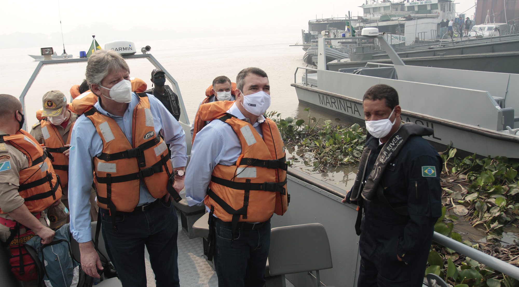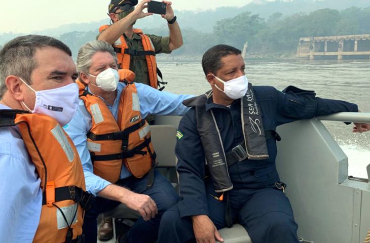 Com o cancelamento do voo em helicóptero, devido a fumaça, a vistoria dos secretários Eduardo Riedel e Jaime Verruck às ações terrestres da operação foi feita em uma lancha da Marinha, por cerca de 40 minutos. Presentes também o contra-almirante Sérgio Guida, coronel Joílson Amaral e o general Luiz Carlos Marcheti.