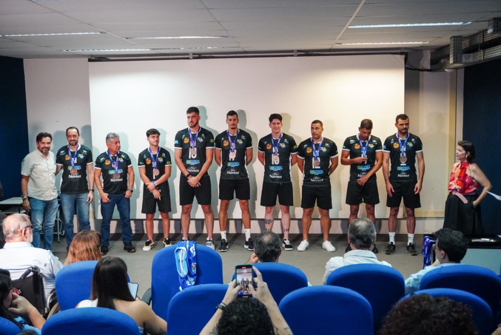 Nesta quinta-feira (27), em coletiva de imprensa, foi apresentado o Sesc MS Vôlei, novo nome da equipe que representará Mato Grosso do Sul na Superliga B de voleibol 2025/2026, consolidando um novo momento para a modalidade no Estado. Durante o evento, houve a premiação pelo terceiro lugar na Superliga C nacional, além da apresentação dos novos parceiros e dos atletas que defenderão Mato Grosso do Sul na próxima temporada da Superliga B.